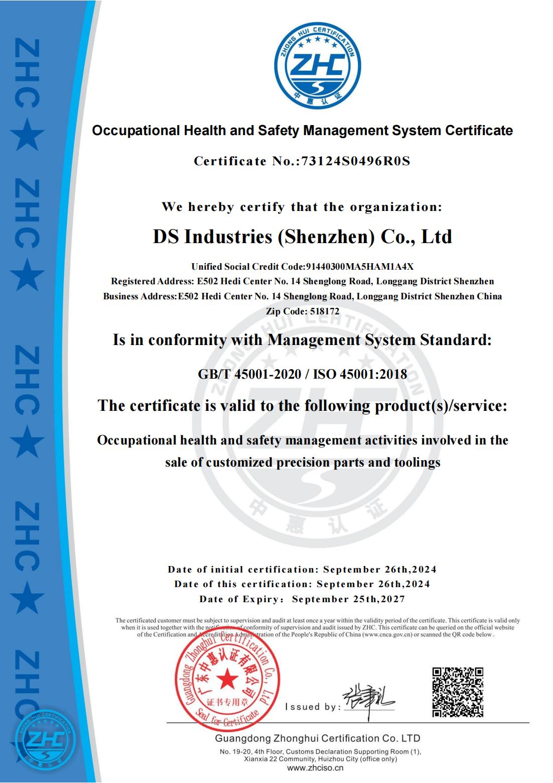 As indústrias DS seguem: Diretrizes ISO 9001 para controle de qualidade. Se você receber parte que atender às especificações do desenho, a DS Industries enviará peças qualificadas gratuitamente ou reembolsará total para a parte defeituosa.